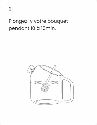Plongez le bouquet dans l’eau frémissante : Les fleurs se déploient délicatement, comme si elles reprenaient vie en quelques instants.