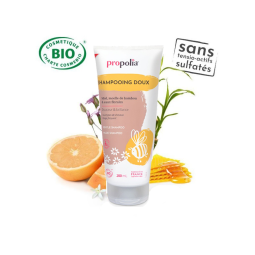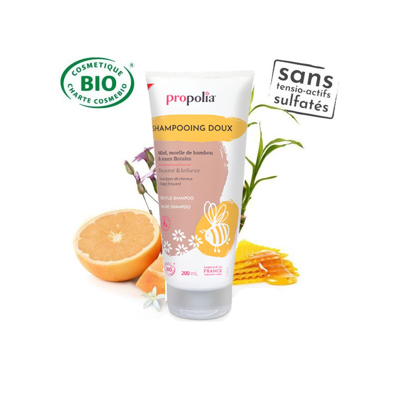 LE SHAMPOING DOUX, certifié Bio, au Miel et à la moelle de Bambou prend soin des cheveux fragiles et sensibles en douceur. Sa formule hydratante et apaisante respecte le cuir chevelu, redonne souplesse, légèreté et brillance à la chevelure sans piquer les yeux. Un véritable moment de bien-être pour toute la famille.