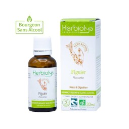 Ingrédients par dose journalière (18 gouttes) : Bourgeon de feuille frais de Figuier Bio (Ficus carica) - 43 mg, Additifs : Glycérine végétale Bio, Eau de source peu minéralisée.