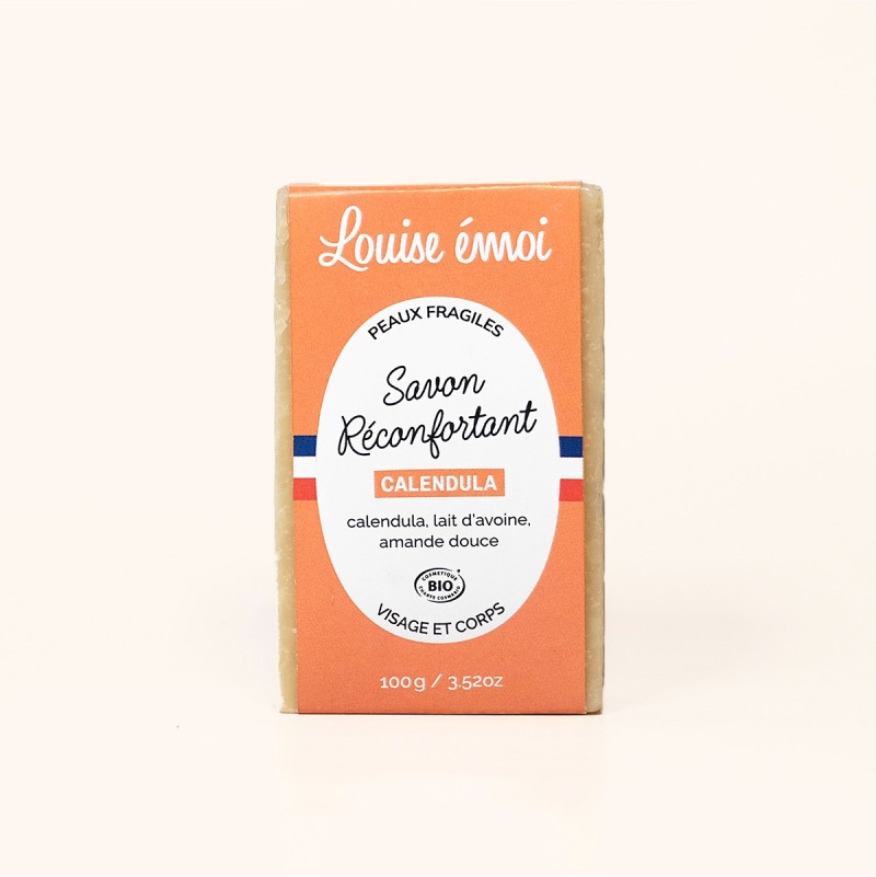 Fait avec passion et avec le plus grand soin par les maîtres savonniers dans les ateliers de Louise Émoi dans le Tarn (81), la fabrication du savon Calendula par saponification à froid est un procédé unique, et une méthode ancestrale qui garantit une qualité supérieure aux savons. Sa formule unique est composée d'une synergie de 5 actifs clés aux vertus inégalées :