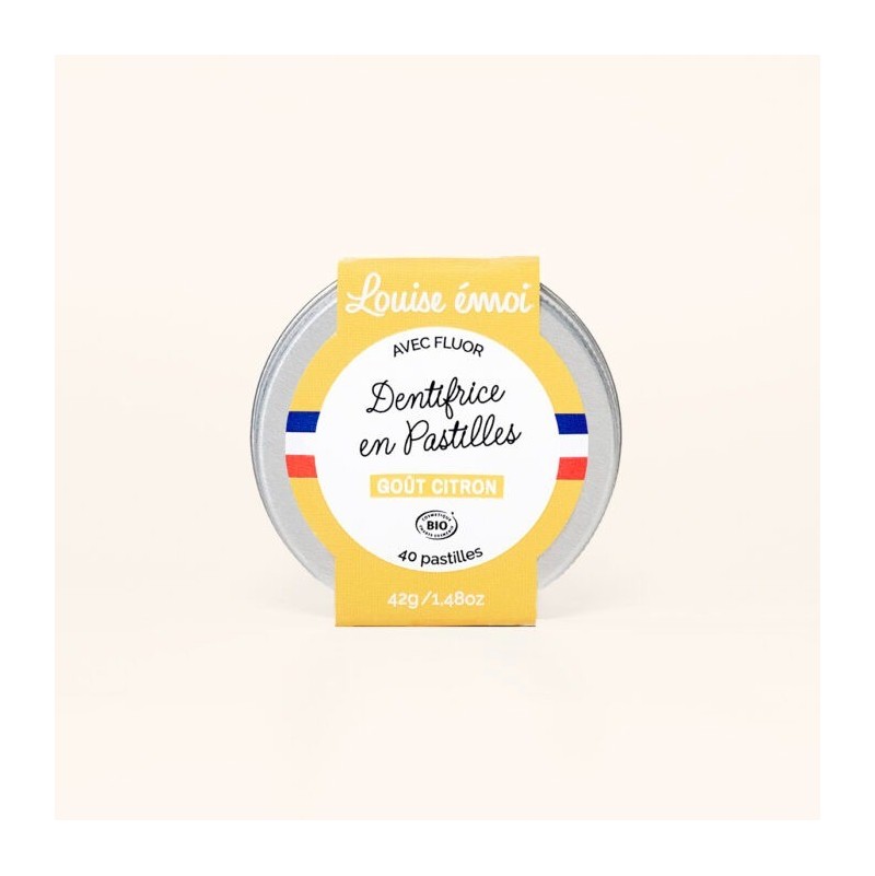 Adieu les dentifrices en tube en plastique, hello le dentifrice en pastille Louise émoi ! Sa formule enrichie en fluor et huile essentielle vous garantie des dents saines, et en bonne santé pour un sourire ravageur toute la journée Son délicieux goût citron lui apporte fraicheur et sucrosité, idéal pour les enfants dès l’âge de 6 ans !