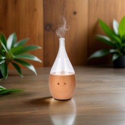 Sous son look élégant et moderne se cache un DIFFUSEUR D'HUILES ESSENTIELLES PAR NÉBULISATION programmable et efficace. Il est composé d’une base en bois et une verrerie artisanale mise en valeur par un éclairage LED.