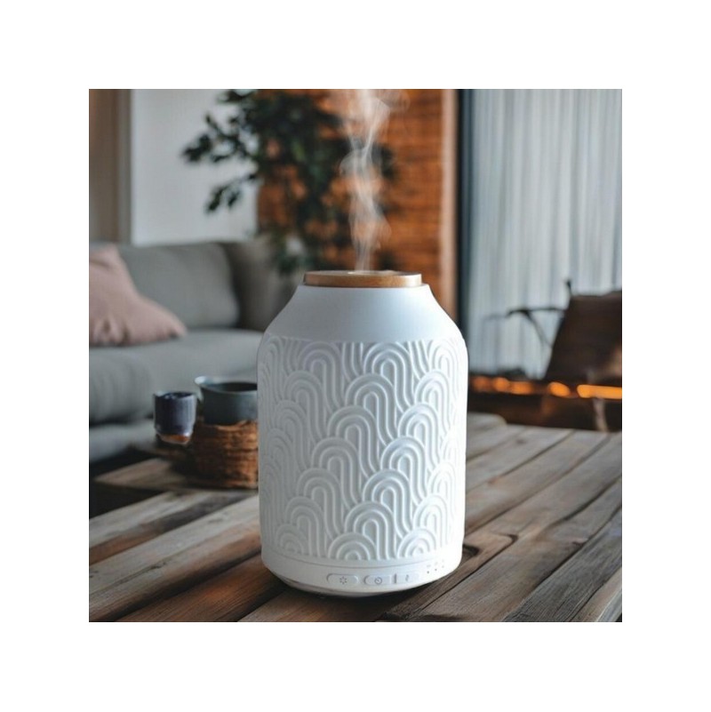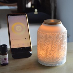 Le diffuseur connecté Prague, en céramique translucide qui met en valeur l'éclairage intégré une fois allumé, sera un produit idéal pour votre bien-être et vos séances de diffusion d'Aromathérapie.