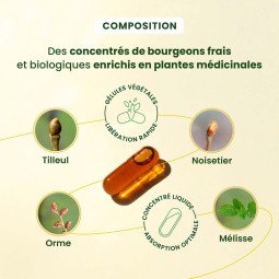 Cette formule 100% d'origine végétale, sans mélatonine, à base de Noisetier, Orme et Tilleul favorise un bon sommeil. La Mélisse aide à l'endormissement et contribue à une relaxation optimale. Les bourgeons frais et Biologiques naturellement concentrés en polyphénols sont reconnus pour leur capacité antioxydante.