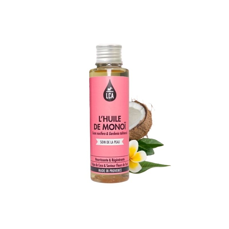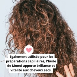 Ingrédients : Huile de Monoï (Cocos nucifera oil, Gardenia tahitensis flower extract), Parfum, Tocopherol (Vitamine E).