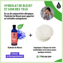 L'EAU FLORALE DE BLEUET, reconnue pour ses propriétés apaisantes, adoucissantes et rafraîchissantes, constitue un excellent soin pour reposer et illuminer les yeux fatigués. Le Bleuet, également appelé Bleuet des Champs ou Casse-lunettes, est reconnu depuis des millénaires pour ses propriétés adoucissantes et décongestionnantes pour les yeux.