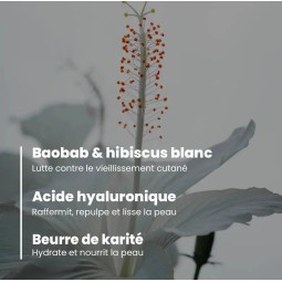 - À base de Baobab et d'Hibiscus Blanc contre le vieillissement cutané