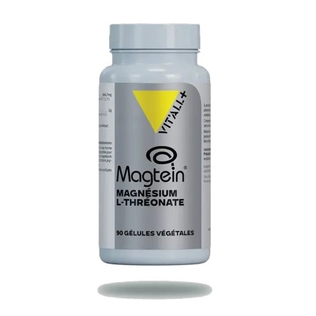 Le Magnésium L-thréonate (Magtein®) est une forme brevetée de Magnésium hautement biodisponible pour le cerveau. il augmente la concentration de Magnésium au niveau cérébral, favorise de bonnes fonctions psychologiques et aide à réduire la fatigue. L'efficacité de Magtein® a été démontré par six études cliniques.