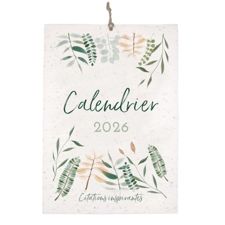 L'authentique calendrier que vous pouvez planter après utilisation afin de faire pousser des herbes, des légumes ou des fleurs. Mois par mois, une citation inspirante vous accompagne pour rendre l’année 2026 plus sereine et spirituelle. Un cadeau original et éco-responsable à offrir ou à s'offrir.
