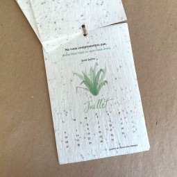1 Calendrier à Planter constitué de 13 pages ensemencées de 13 graines différentes* et d'un dos recyclé rigide relié par une ficelle de Lin. Le tout dans une jolie pochette** fabriquée en France 100% Kraft issu de forêts éco-gérées des Vosges.