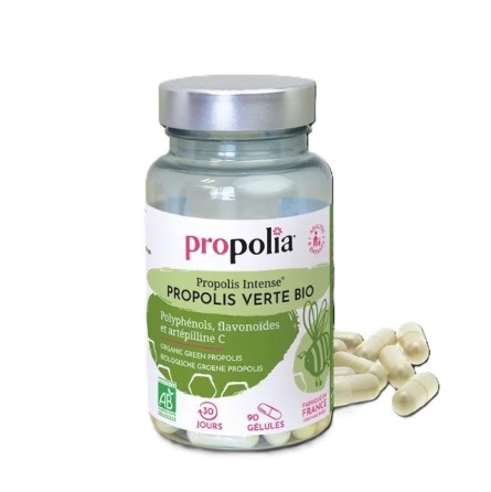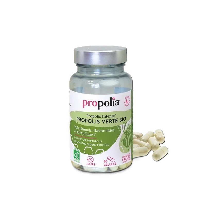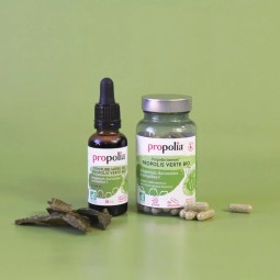 - 1 gélule = 150 mg de Propolis pure verte Bio