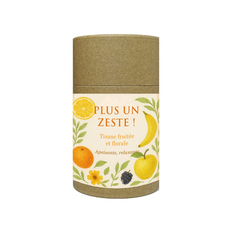 LA TISANE PLUS UN ZESTE est un mélange plein de peps, pour un quotidien Vitaminé. Ce Mélange 100 % Naturel est composé de Pomme, Banane, écorces de Citron, Coing, Citronnelle, morceaux de Pomme, feuilles de Mûre, écorces d'Orange, Huile essentielle de Citron vert, Fenouil et fleurs de Souci. Plus un Zeste, c’est l’infusion des optimistes : Fruitée, Citronnée, Joyeuse… Un rayon de soleil dans chaque tasse !